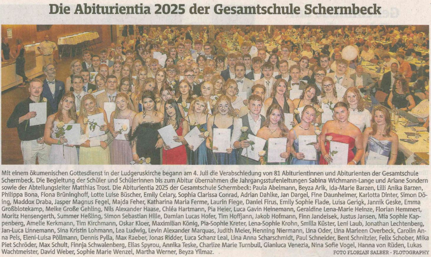 Die Gesamtschule Schermbeck ist die weiterführende Schule für Schermbeck und genießt großes Vertrauen bei Eltern und Schülerinnen und Schülern aus Schermbeck und den umliegenden Kommunen. Die Schülerinnen und Schüler aus Dorsten, Raesfeld, Kirchhellen, Marienthal usw. haben bei der Anmeldung dieselben Chancen zur Aufnahme wie diejenigen aus Schermbeck. Immer wieder auftretende Gerüchte, die etwas anderes behaupten, sind einfach falsch.