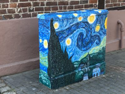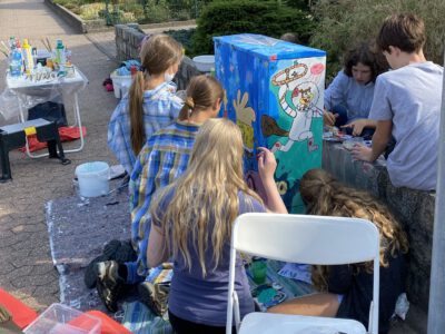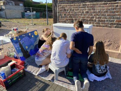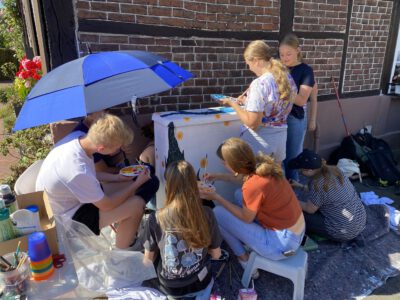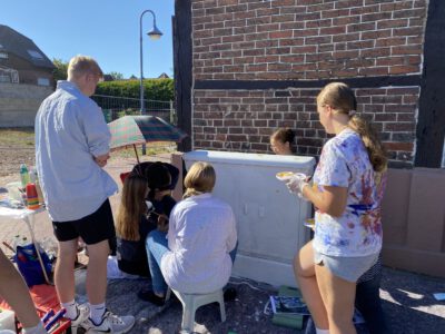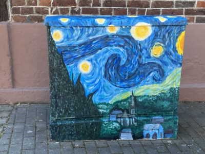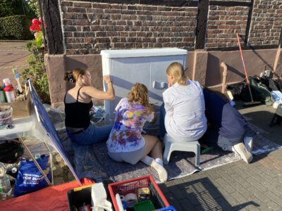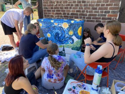 Auch die Gesamtschule Schermbeck war im August 2022 mit Begeisterung dabei: Unter der Leitung von Robert Klem und Stephanie Herbstritt gestalteten Schülerinnen und Schüler verschiedener Jahrgangsstufen drei Stromkästen in der Nähe des Schulgeländes. Von der ersten Idee über die Planung und Skizzen bis hin zur farbenfrohen Umsetzung waren alle mit viel Engagement, Teamgeist und Spaß bei der Sache.